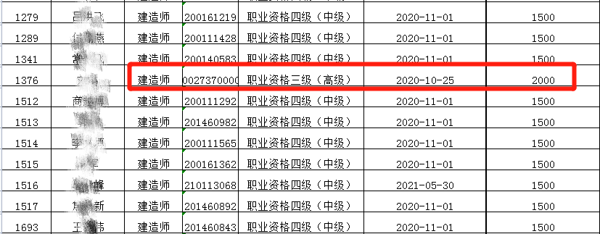 根据公示的名单可以看到,建造师的补贴有1500元,较高是2000元,根据职称高低确定相应的补贴。此外,天津、陕西、四川等地也发布了2021年职业技能提升补贴人员的名单。根据国家相关规定,建造师的补贴标准,应根据取得职业资格证书或职业技能等级证书有所区别,职工取得初级(五级)、中级(四级)和高级(三级)职业资格证书或职业技能等级证书的,补贴标准分别为1000元、1500元和2000元。