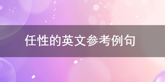 哈喽小伙伴们 ,今天给大家科普一个小知识。在日常生活中我们或多或少的都会接触到任性的英文 参考例句方面的一些说法,有的小伙伴还不是很了解,今天就给大家详细的介绍一下关于任性的英文 参考例句的相关内容。