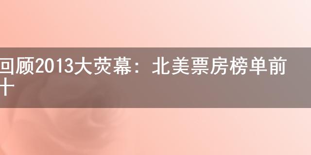 哈喽小伙伴们 ,今天给大家科普一个小知识。在日常生活中我们或多或少的都会接触到回顾2013大荧幕:北美票房榜单前十方面的一些说法,有的小伙伴还不是很了解,今天就给大家详细的介绍一下关于回顾2013大荧幕:北美票房榜单前十的相关内容。