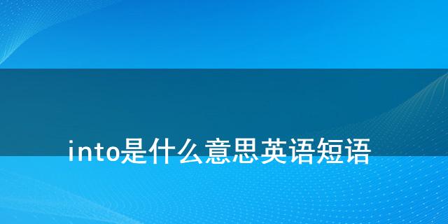 最近小编看到大家都在讨论into是什么意思 英语短语相关的事情,对此呢小编也是非常的感应兴趣,那么这件事究竟是怎么发生的呢?具体又是怎么回事呢?下面就是小编搜索到的关于into是什么意思 英语短语事件的相关信息,我们一起来看一下吧!
