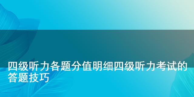 上述为大家分享了四级听力各题分值明细及答题技巧,希望大家可从中掌握,提升自己四级听力备考的效果,顺利通过考试。