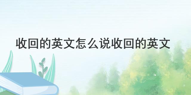 最近小编看到大家都在讨论收回的英文怎么说 收回的英文相关的事情,对此呢小编也是非常的感应兴趣,那么这件事究竟是怎么发生的呢?具体又是怎么回事呢?下面就是小编搜索到的关于收回的英文怎么说 收回的英文事件的相关信息,我们一起来看一下吧!